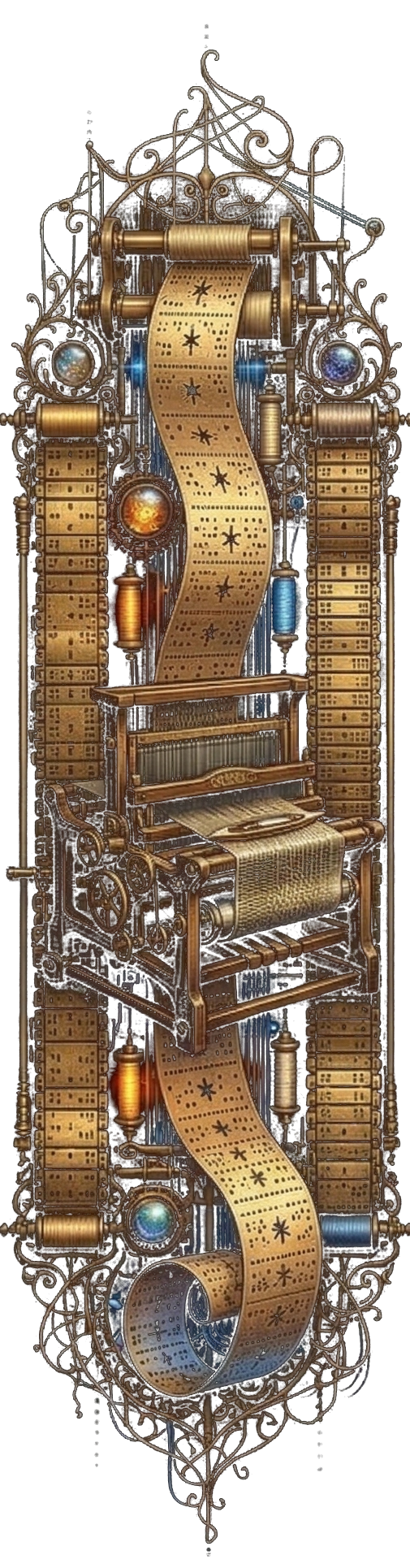 Writing followed the same pattern. It began as bureaucracy: notches on bone, marks in clay, the mundane logistics of tracking debts and harvests. Yet we are creatures who cannot help but exceed our own inventions. What started as record-keeping evolved into poetry, philosophy, and the full architecture of written thought. By giving thought a body outside ourselves, marks that could outlast us, be copied, be carried, we discovered we could leave pieces of our inner lives in the world, where they might take root in others. The punch cards of the Jacquard loom, designed for nothing grander than automating patterns in silk, inspired Babbage to give machines a language of their own, instructions encoded in presence and absence, a grammar of operations rather than words, eventually leading to the networked totality of the internet. This was a different kind of transmission, not ideas expressed, but decisions encoded, logic made executable, intent given physical operational form.